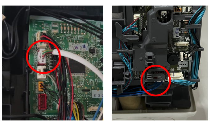 - หาช่องต่อ CN105 ช่องสีแดงตามในภาพ ตำแหน่งของช่อง CN105 จะอยู่ด้านหน้าหรือไม่ก็อยู่บนแผงคอนโทรลด้านใน